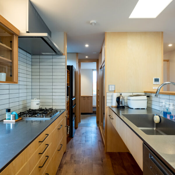 Ⅱ型の造作キッチン、その脇にはパントリー収納