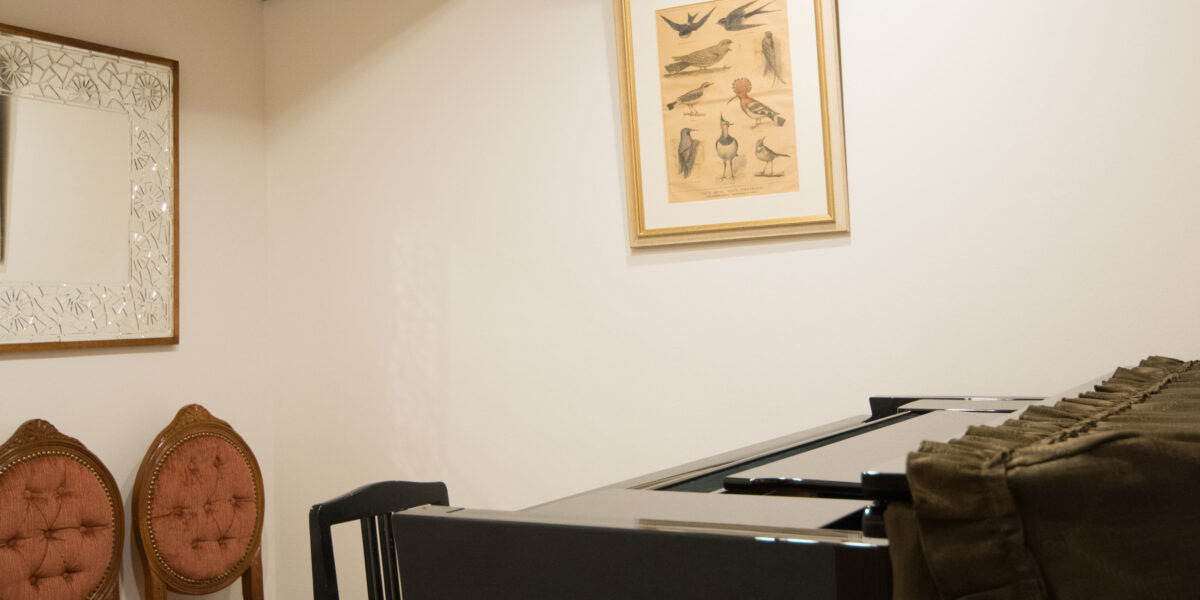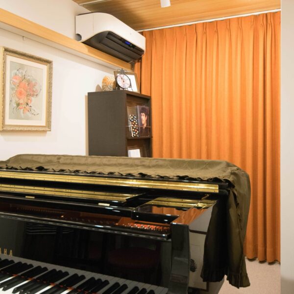 開口部は、遮音だけでなく吸音のために全面カーテンで覆っています。