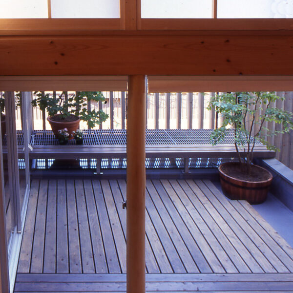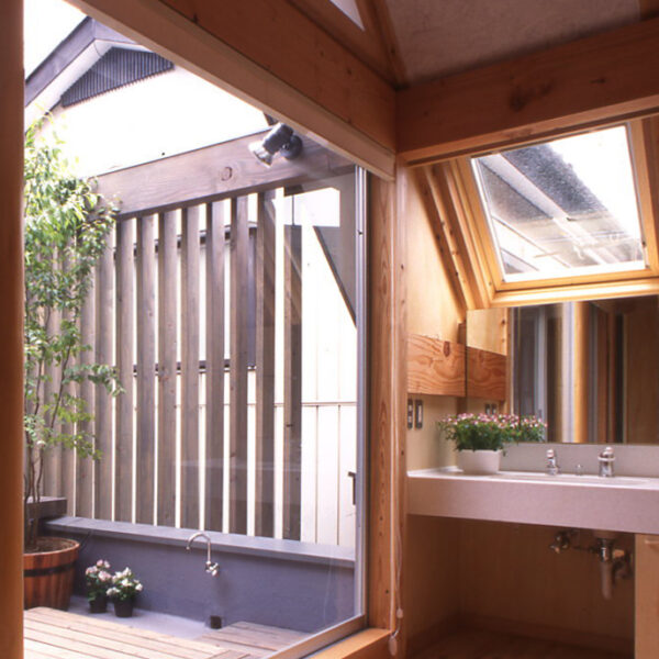 自然光を室内に取り込むため2階に庭を設けました。トップライトから1階にも自然光が降り注ぎます。
