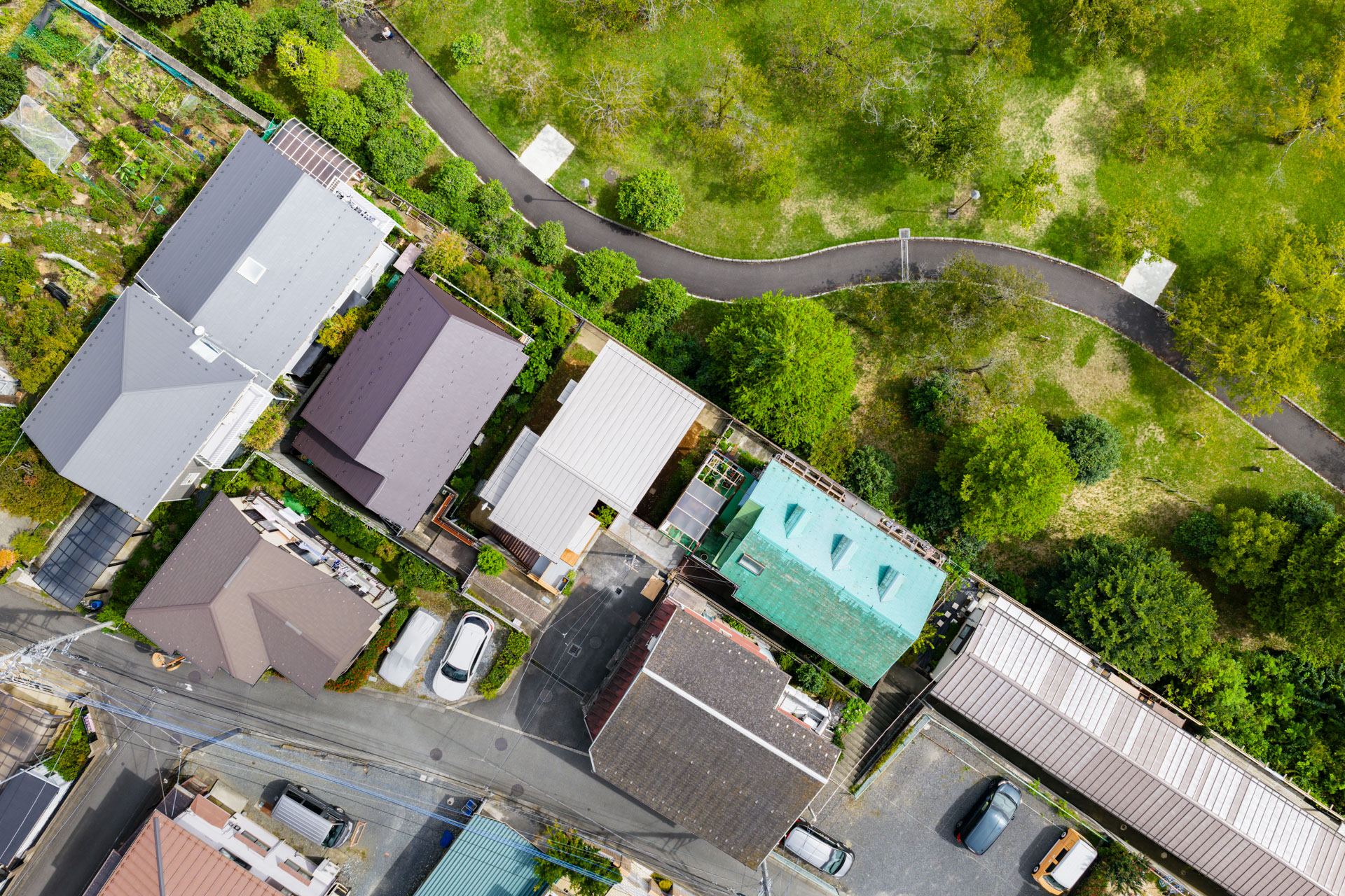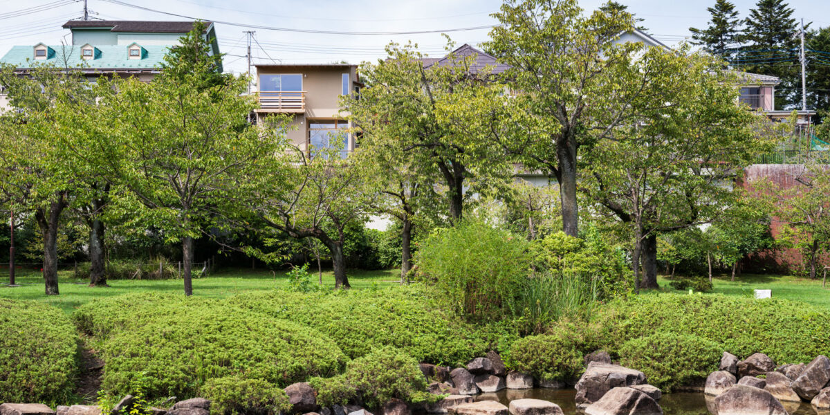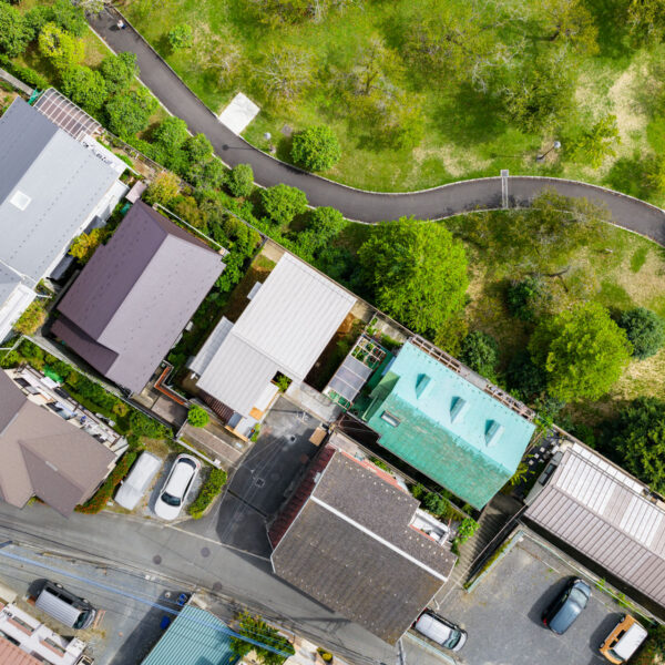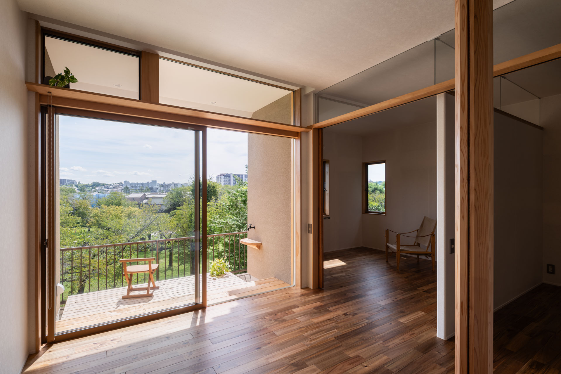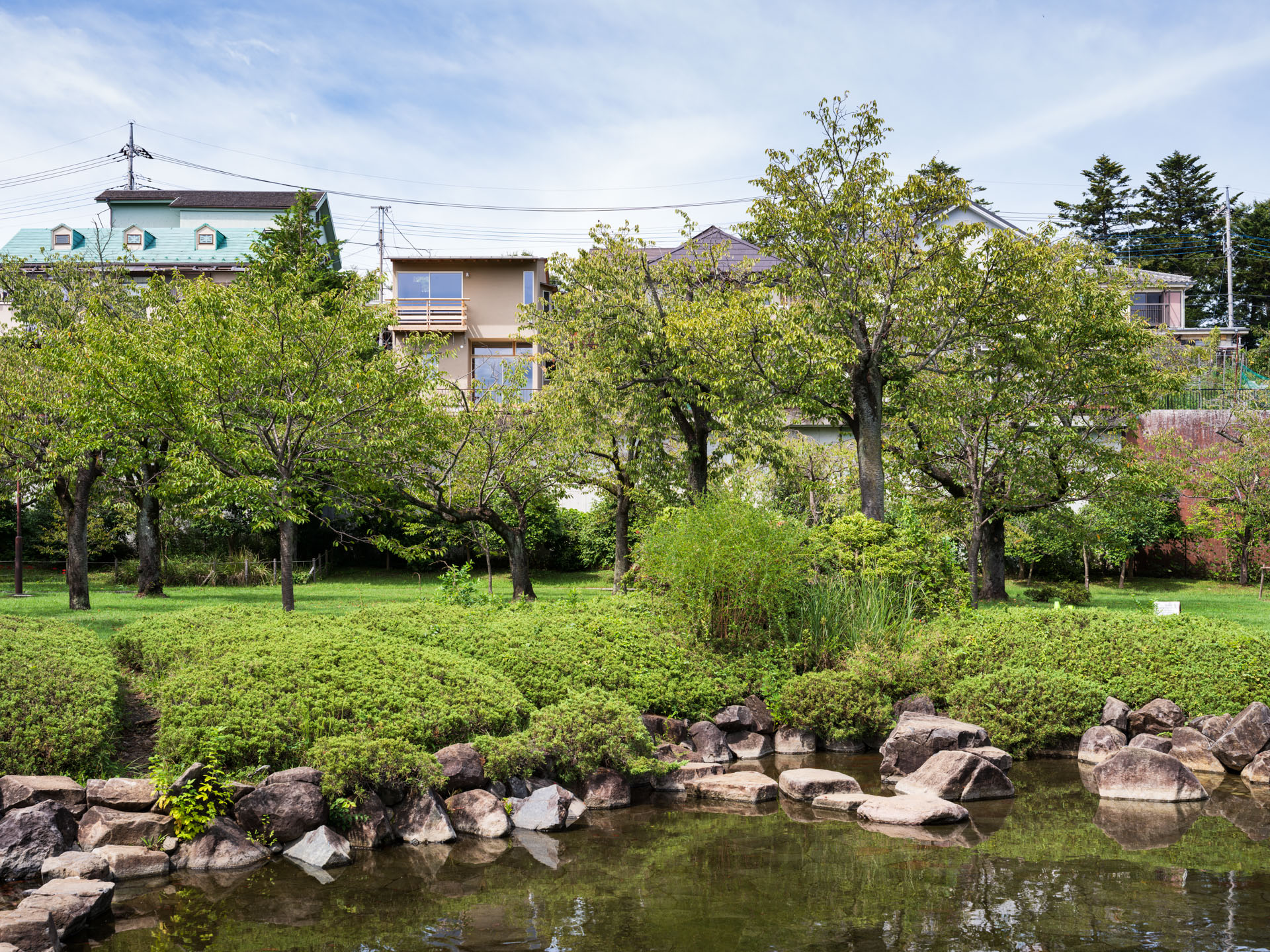 敷地は約30年前の小規模住宅開発地の一区画、公園を見渡せる高台にあります。