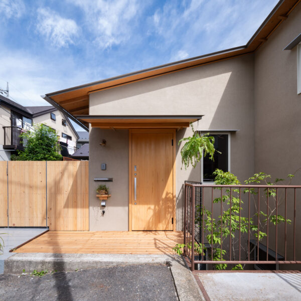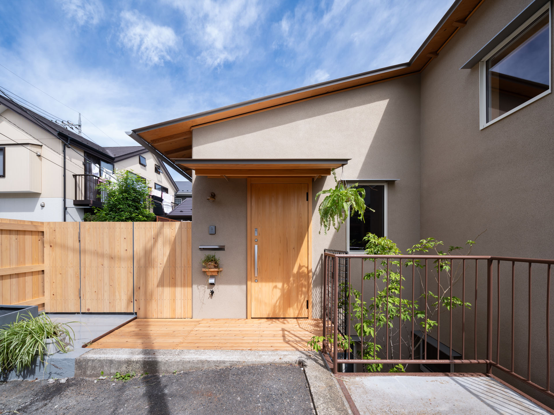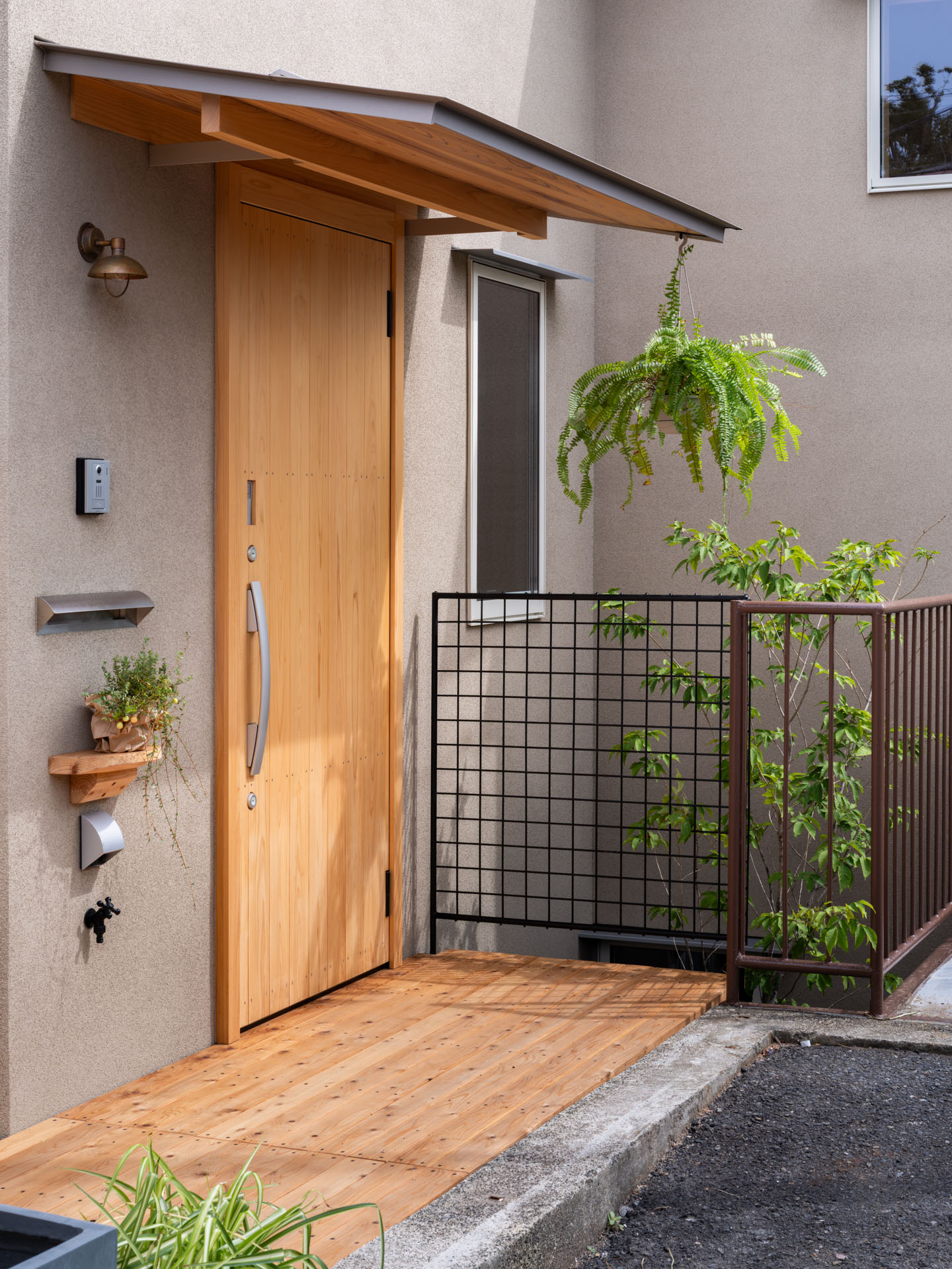 外観は主張しすぎないように階高を抑え、軽やかになるよう軒先や玄関庇の納まりを工夫しました。