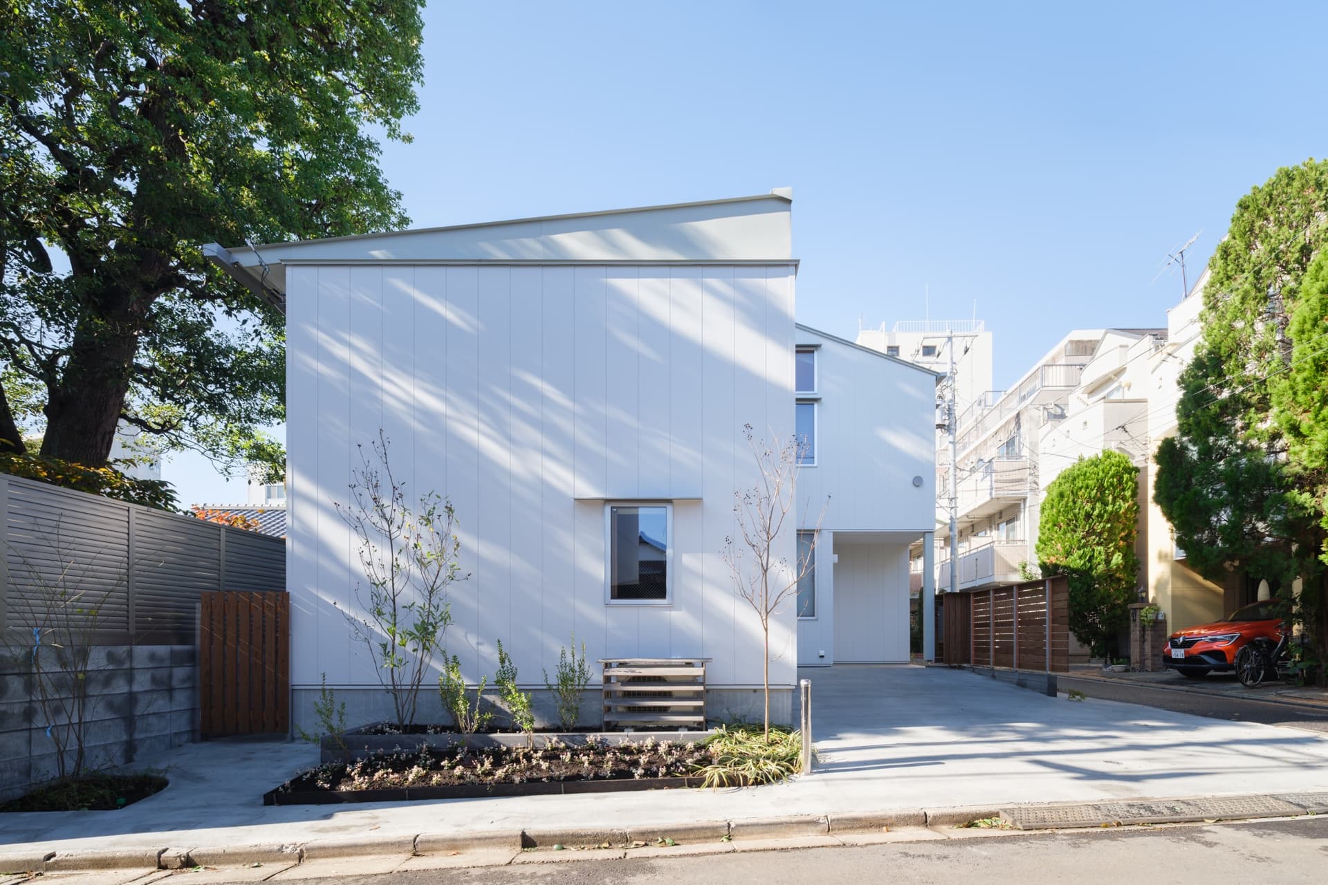 外壁材は汚れにくく耐久性のあるガルバリウム鋼板を採用しました。
