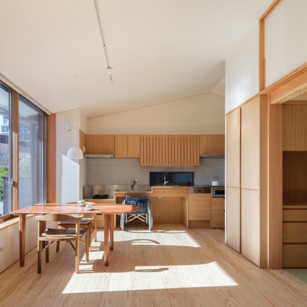キッチンカウンターが3段階になっている理由は、車椅子利用者と健常者の使用高さに対応するためです。