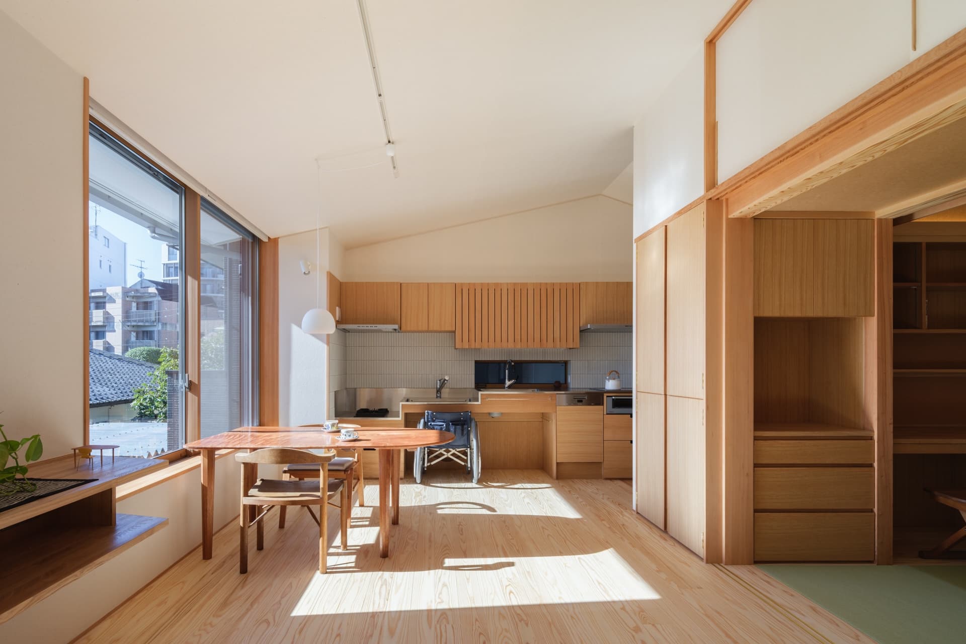 右手に見えるのは和室。床レベルはフラットです。