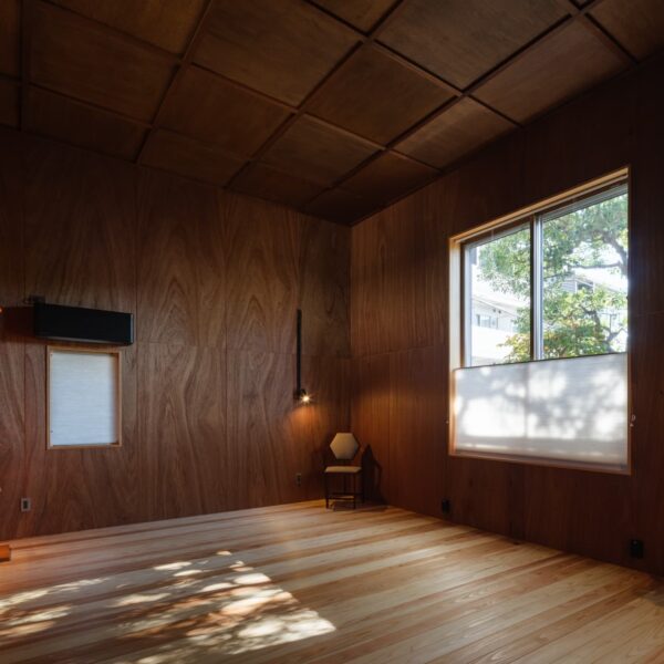 左側の平屋部分はオーディオルームです。一般的な部屋の1.5倍の天井高があります。