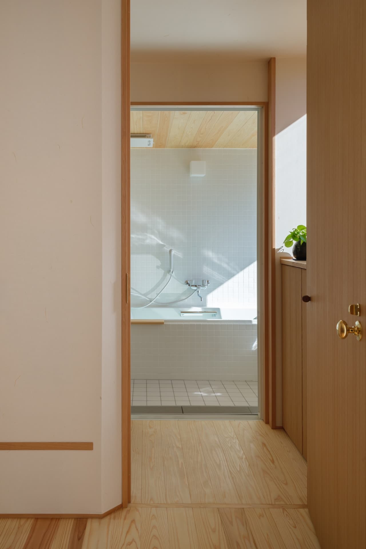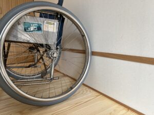 車椅子のタイヤが壁に当たって汚れてしまうのを防ぐために、タイヤの高さに合わせて横木を取りつけました。